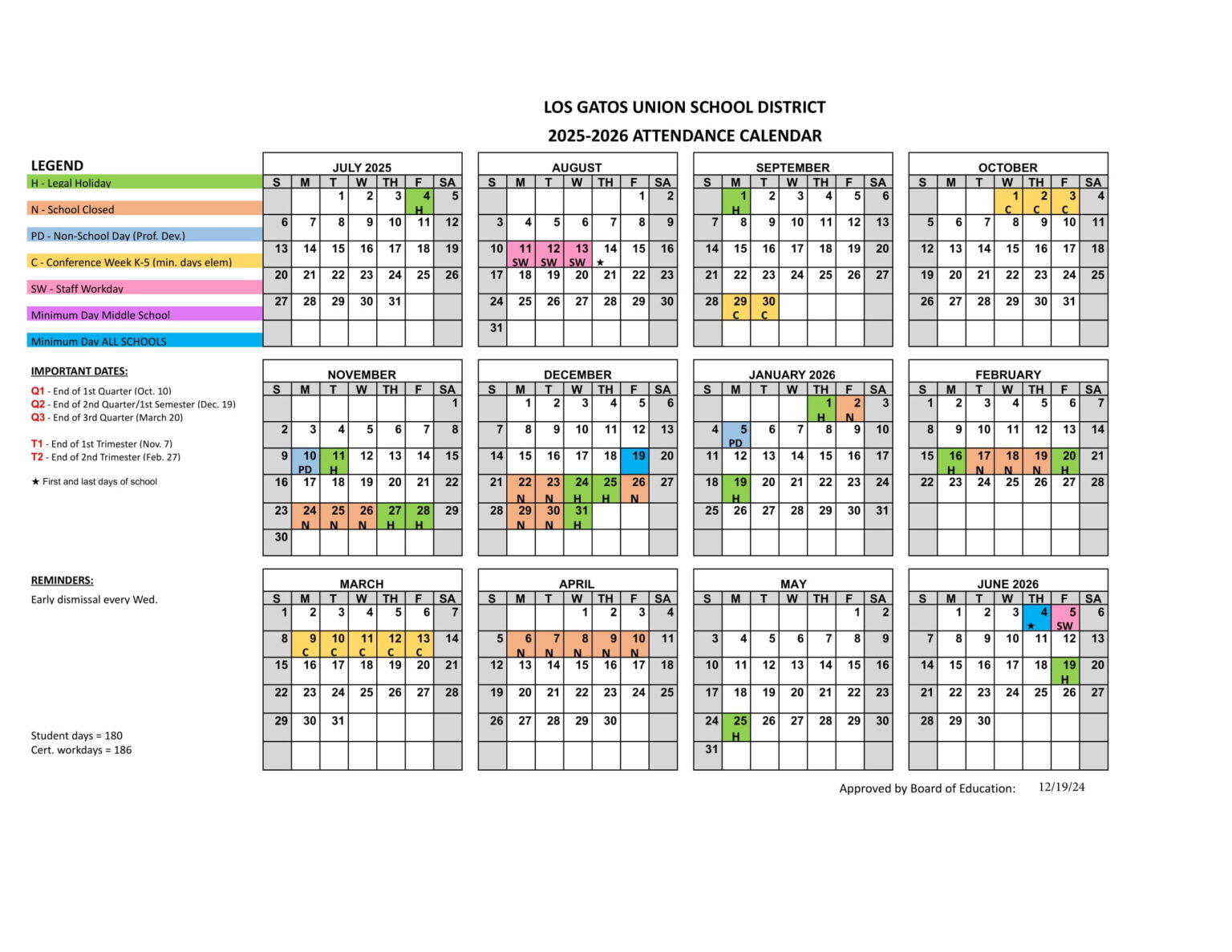 Los Gatos Union School District Calendar 25 26 PDF revised EduCounty