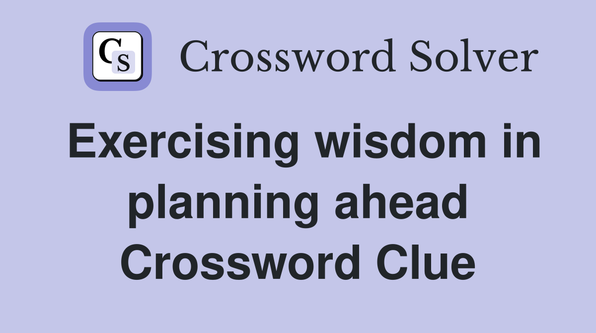 Exercising wisdom in planning ahead Crossword Clue Answers