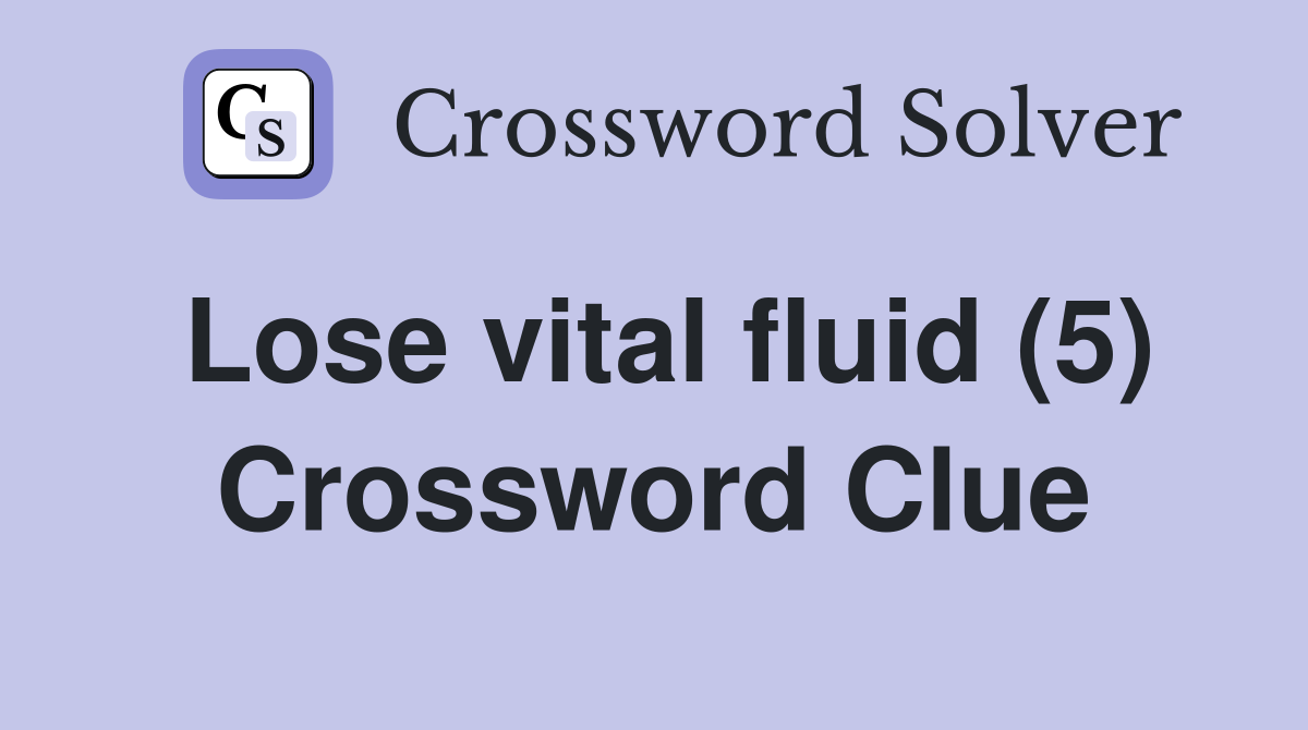Lose vital fluid (5) Crossword Clue Answers Crossword Solver