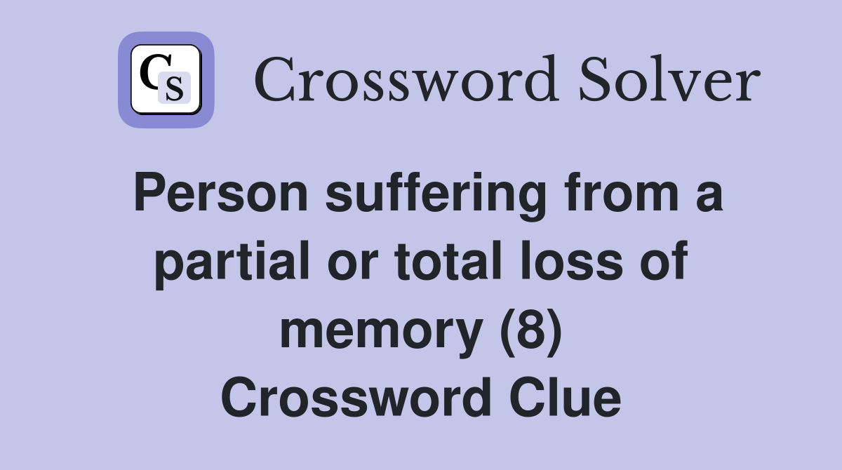 Person suffering from a partial or total loss of memory (8) Crossword
