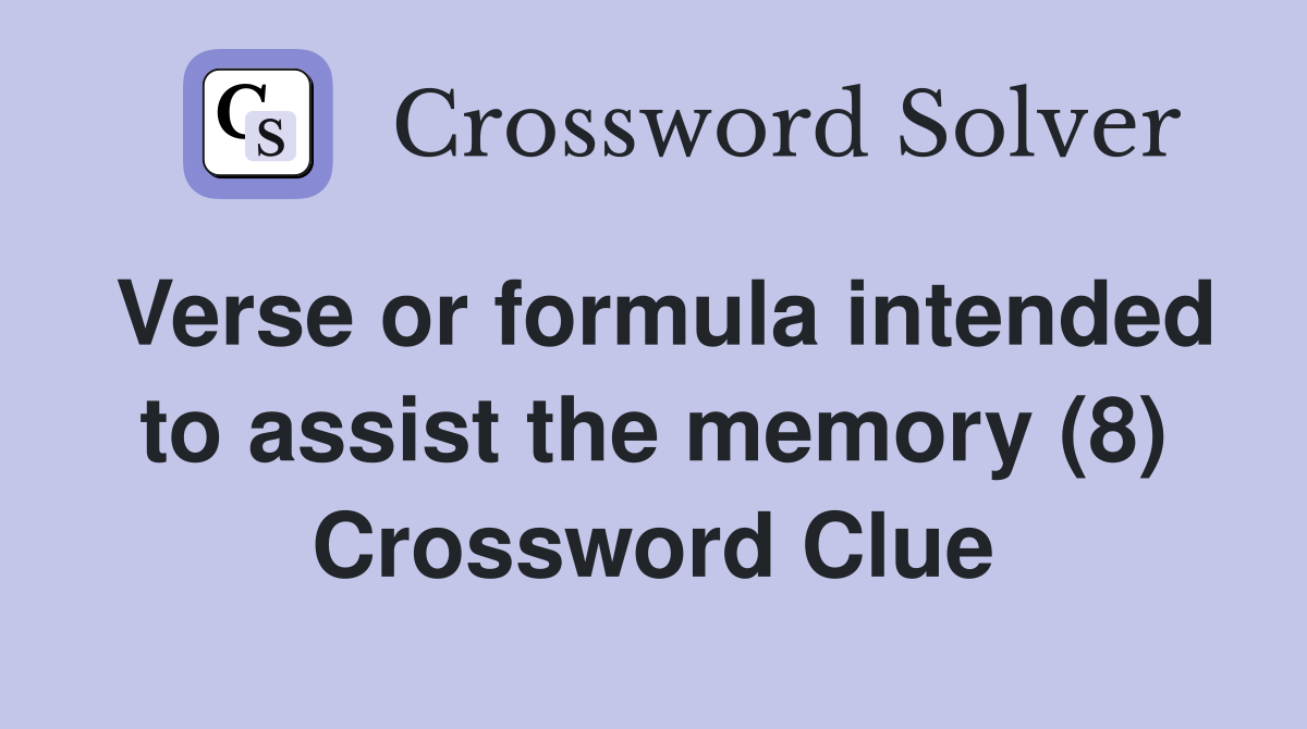 Verse or formula intended to assist the memory (8) Crossword Clue
