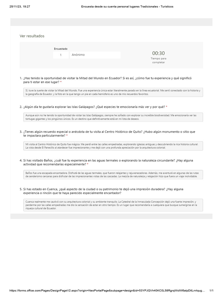 Encuesta Desde Su Cuenta Personal Lugares Tradicionales Turisticos PDF