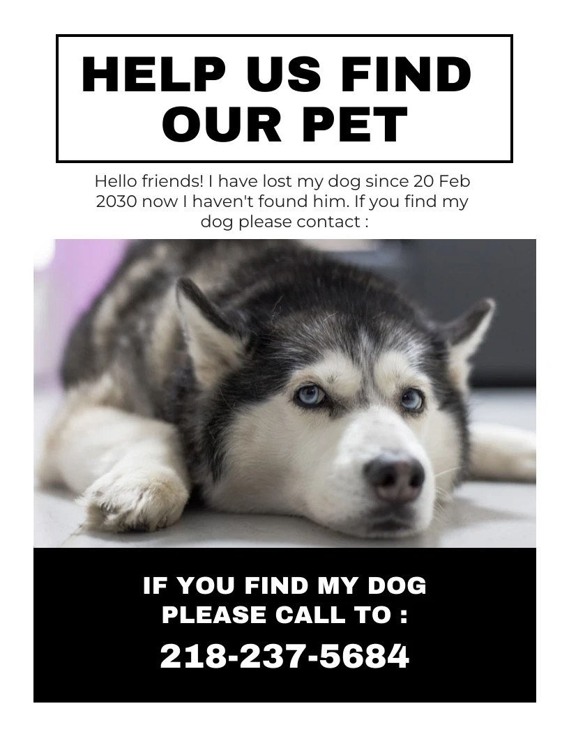 Free Printable Customizable Lost Dog Flyer Templates 45% OFF