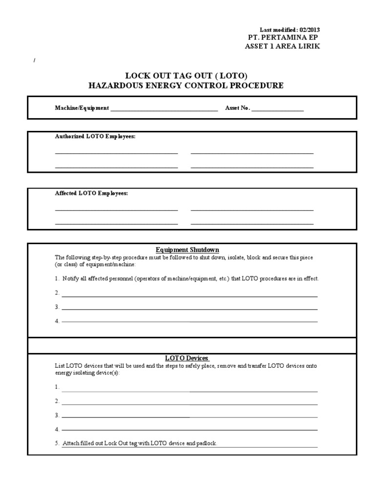 Loto Procedure Template