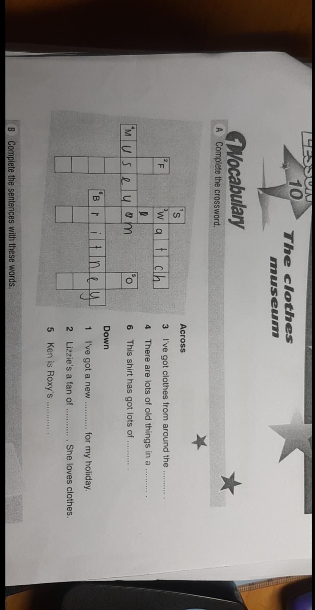 10 The clothes museum Vocabulary A Complete the crossword 2 F S W D O