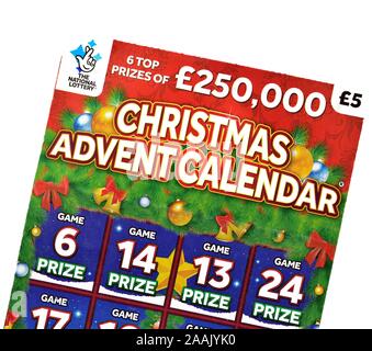 The national lottery Christmas Advent Calendar Scratchcard Stock Photo