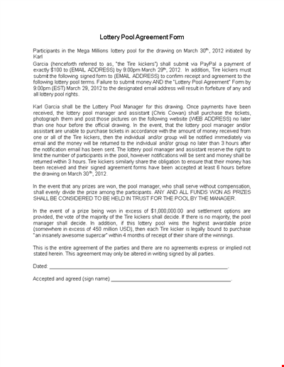 Lottery Pool Agreement Template for Managers Clear Terms Guidelines