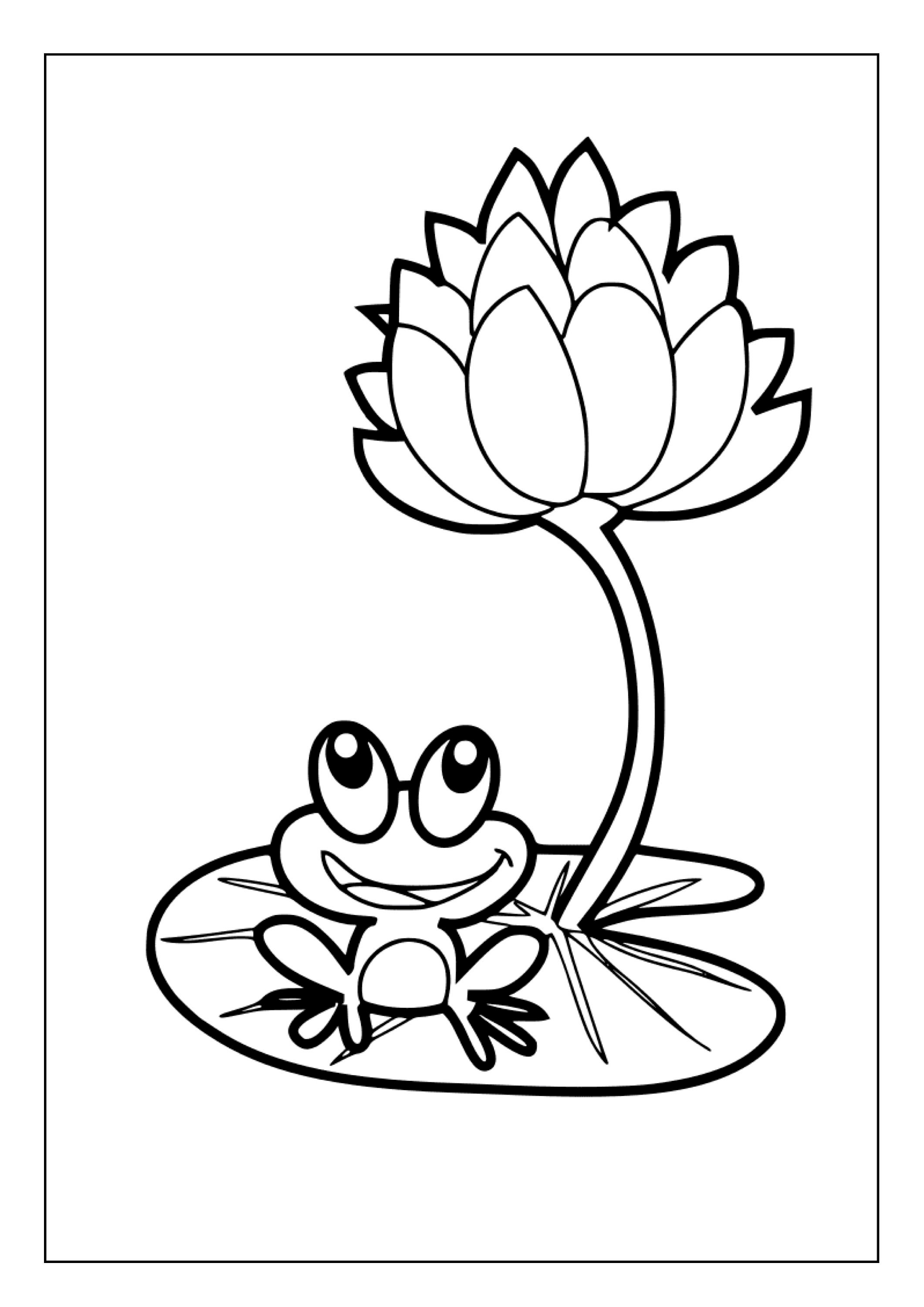 Printable Lotus Flower on Water Coloring Pages book for kids