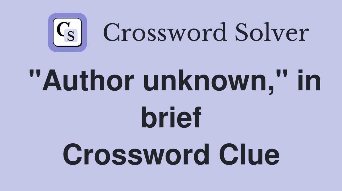 quot Author unknown quot in brief Crossword Clue Answers Crossword Solver