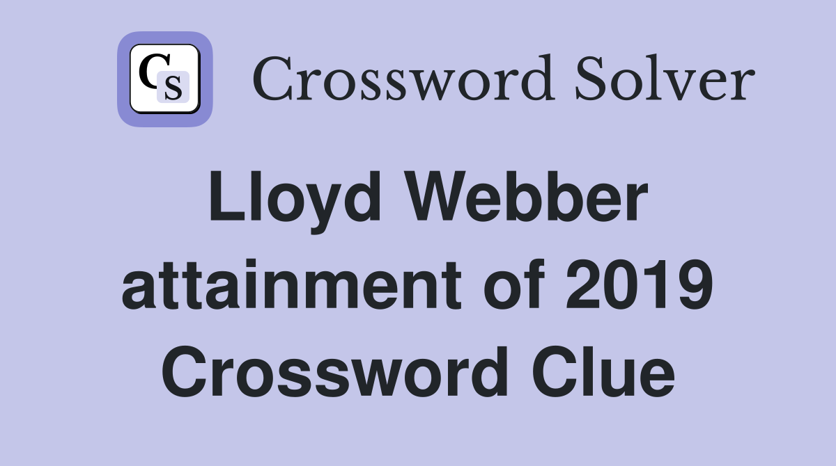 Lloyd Webber attainment of 2019 Crossword Clue Answers Crossword Solver