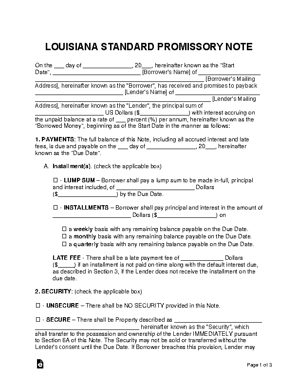 Free Louisiana Promissory Note Templates (2) PDF Word eForms