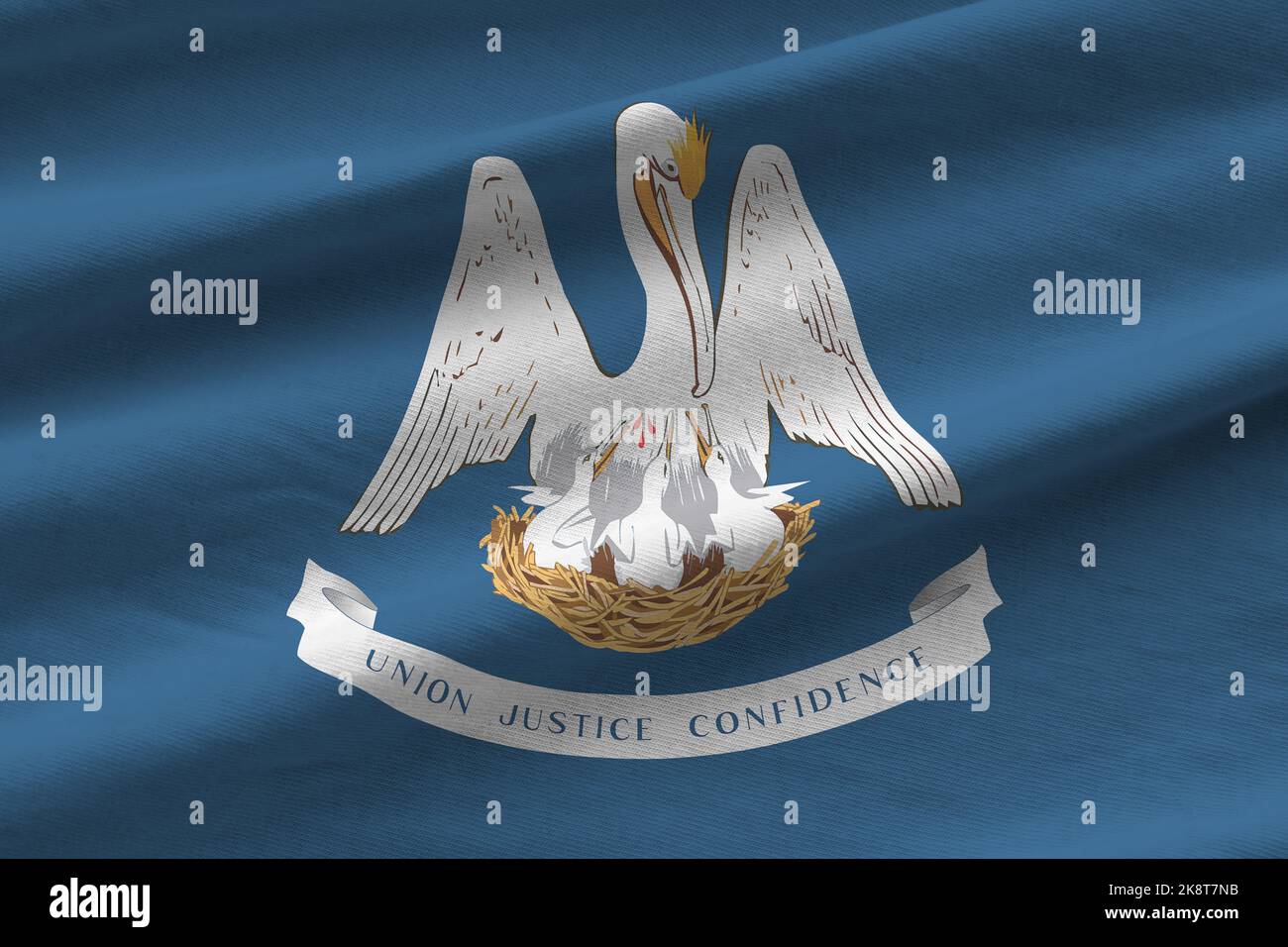 Louisiana US state flag with big folds waving close up under the studio