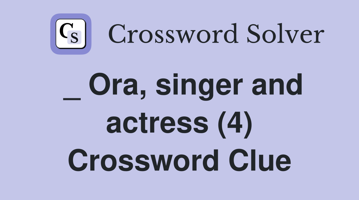 Ora singer and actress (4) Crossword Clue Answers Crossword Solver