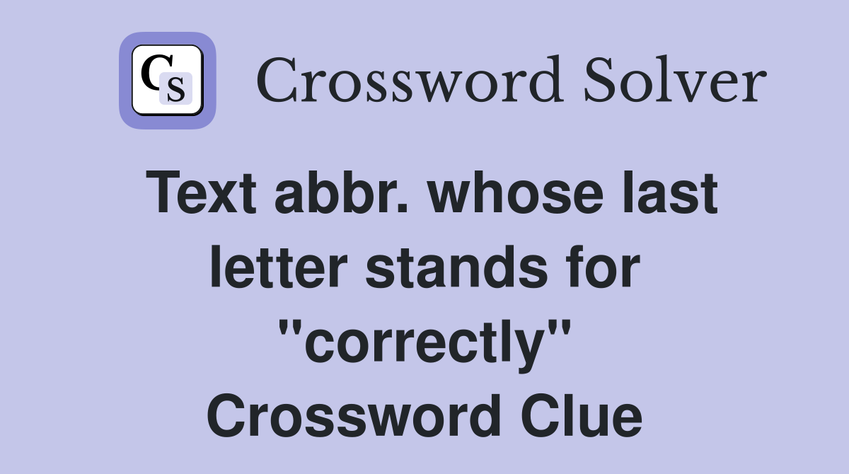 Text abbr whose last letter stands for quot correctly quot Crossword Clue