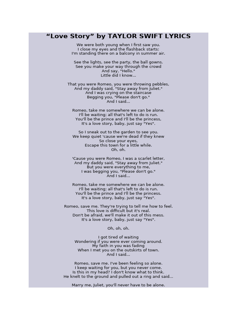Love Story Lyrics PDF
