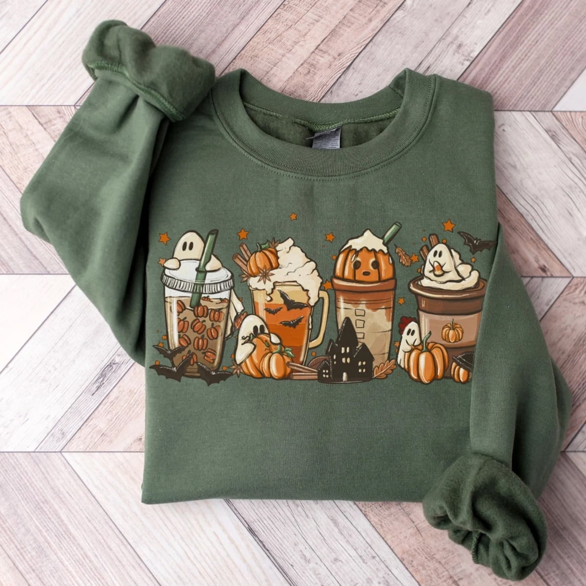 Halloween Coffee Drinks Sweatshirt Cute Ghost Pumpkin Fall Latte