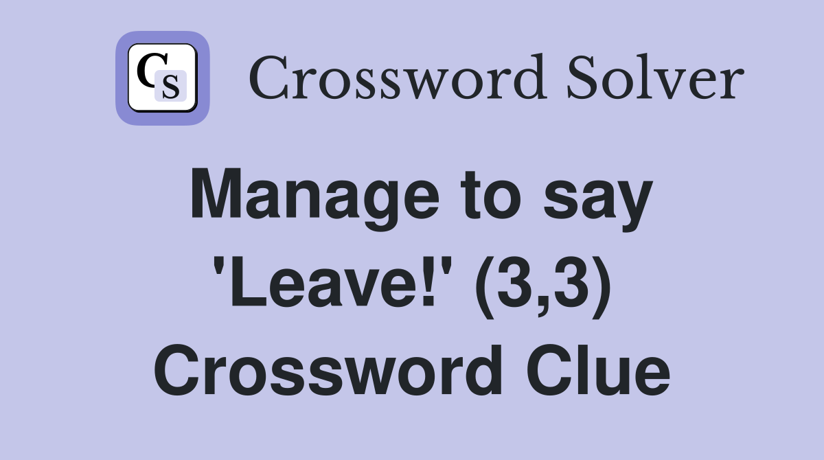 Manage to say #39 Leave #39 (3 3) Crossword Clue Answers Crossword Solver