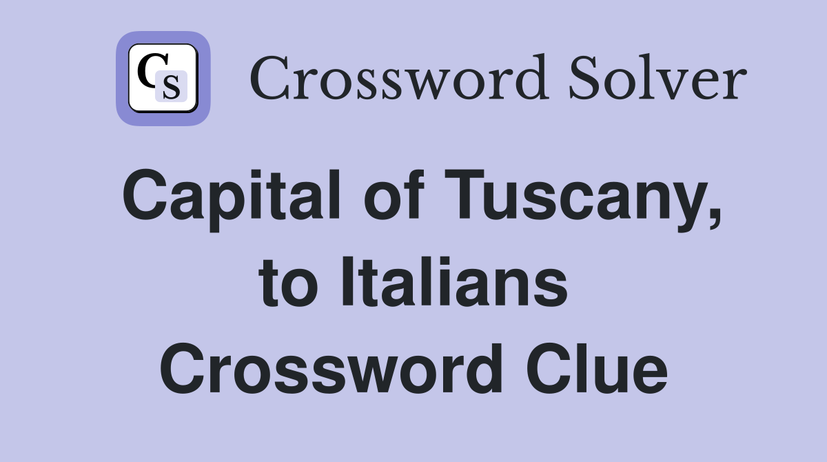 Capital of Tuscany to Italians Crossword Clue Answers Crossword Solver