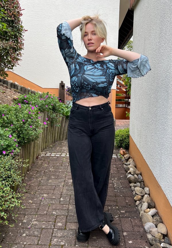 Stradivarius WITH A LOW CUT BACK T shirt basic metallic black/zwart