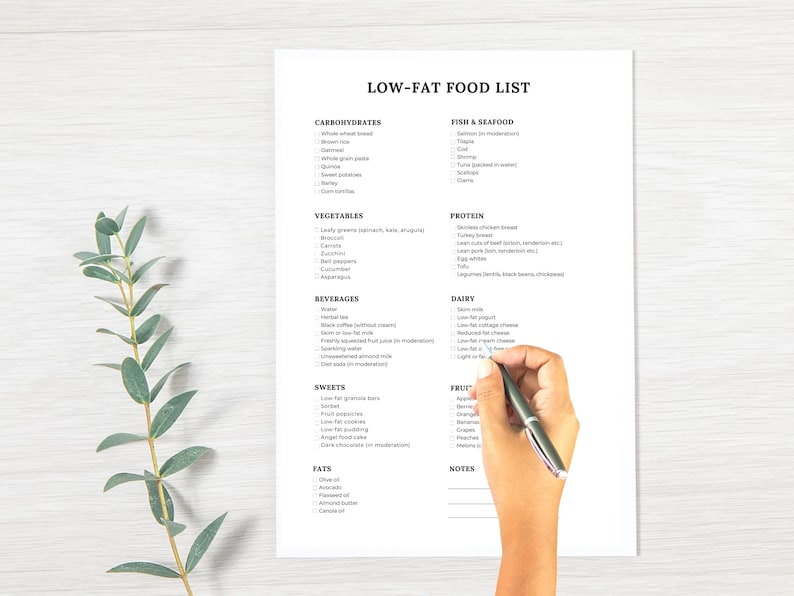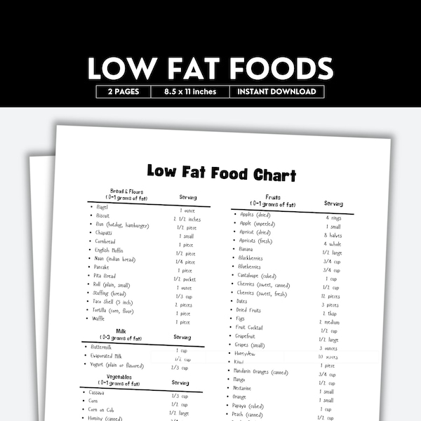 Low Fat Food List: Diet Guide Grocery Shopping (PDF) Etsy
