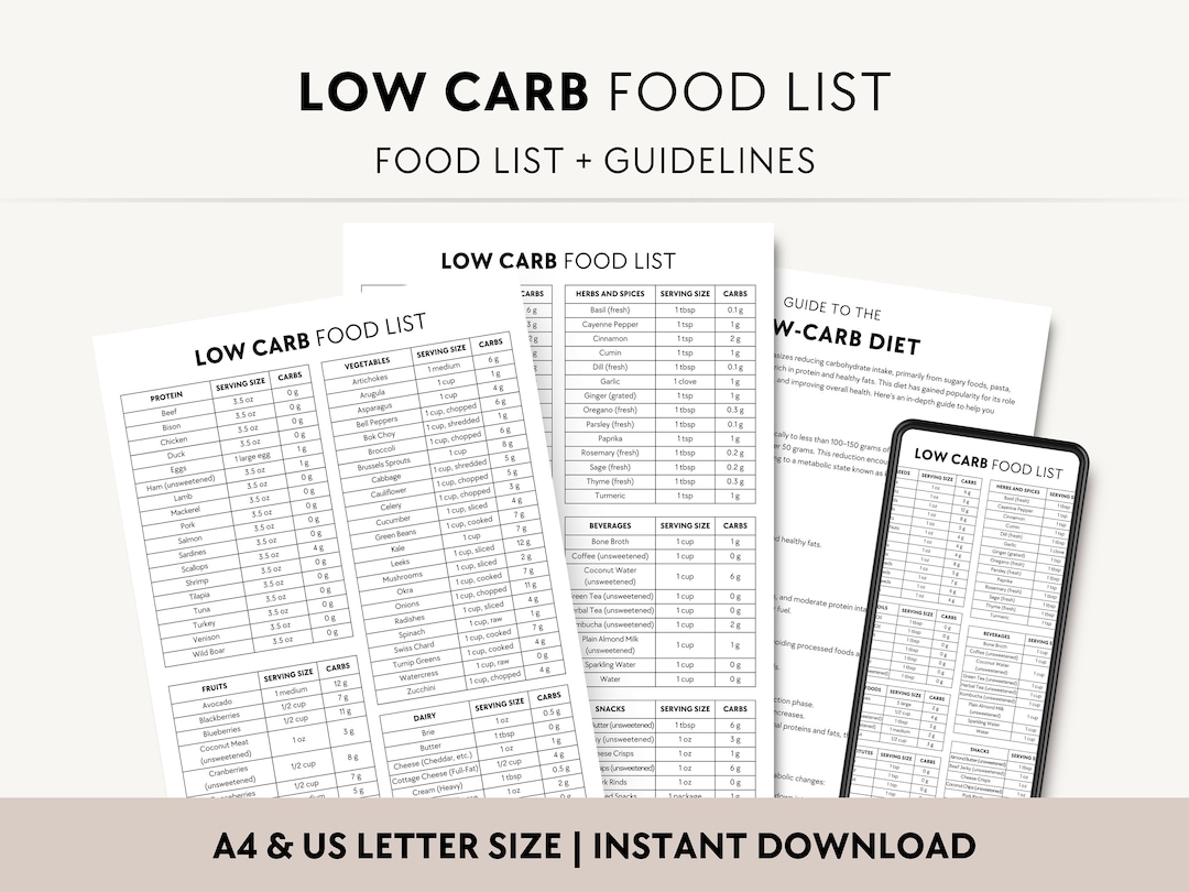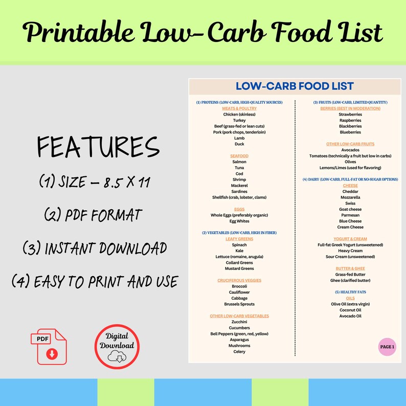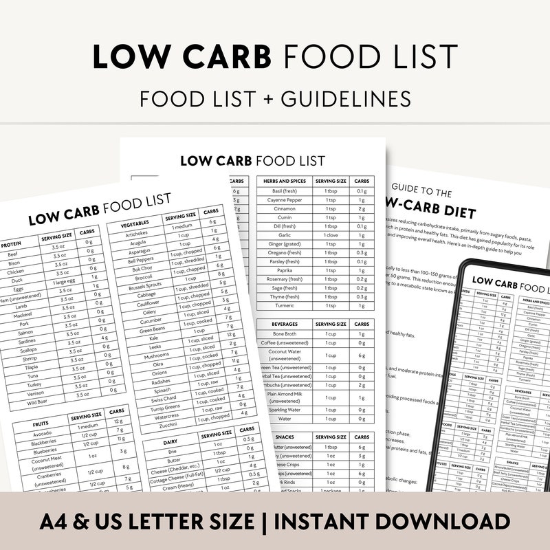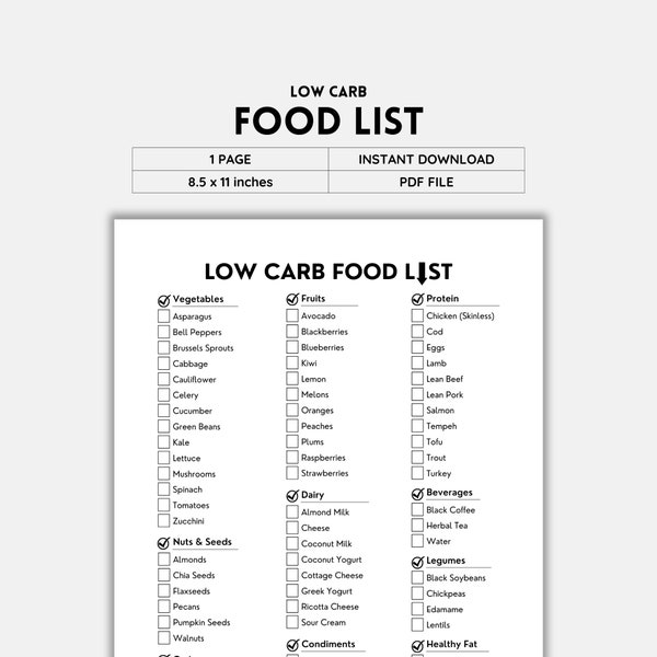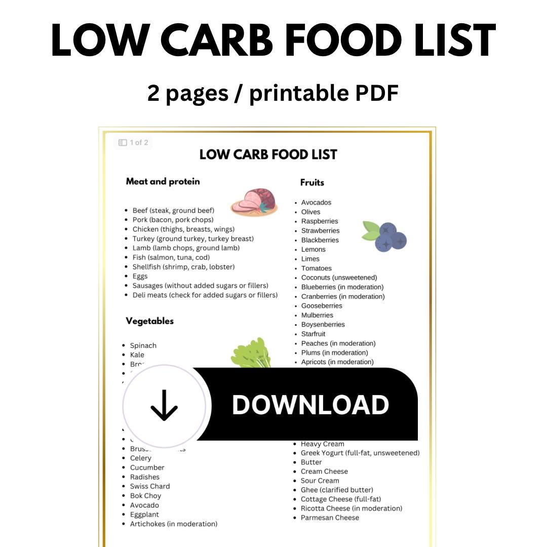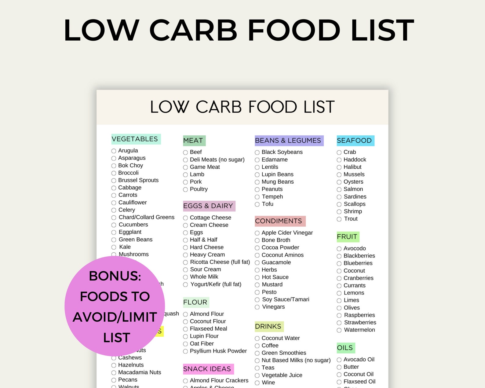 Low Carb Food List Printable Low Carb Diet PDF Keto Meal Prep