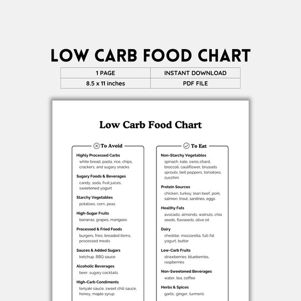 Low Carb Diet Food Chart Low Carb Foods List PDF Printable to Help