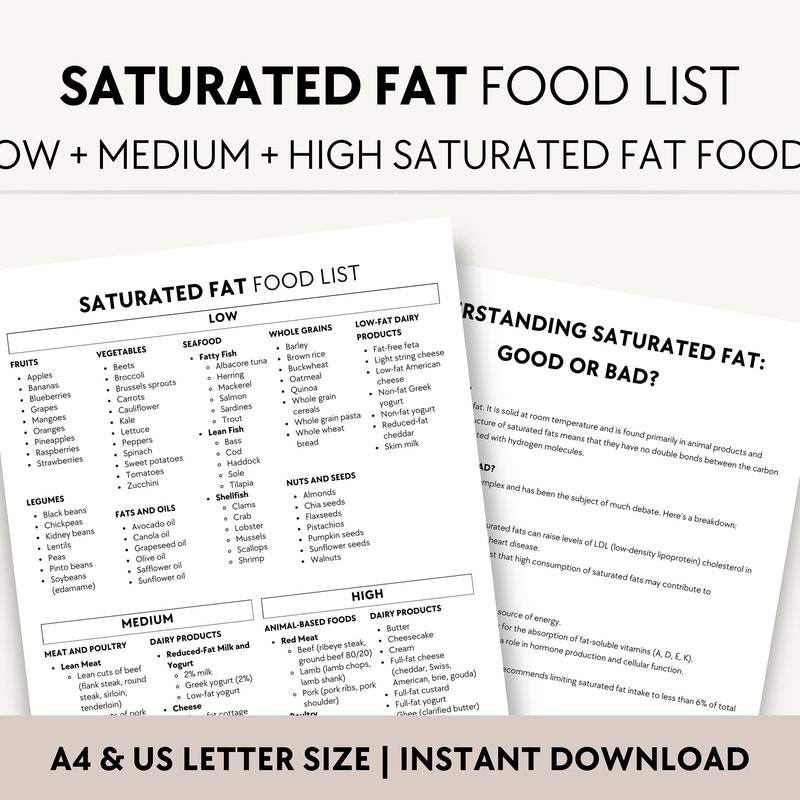 Saturated Fat Food List Printable Heart Healthy Diet Plan PDF Low