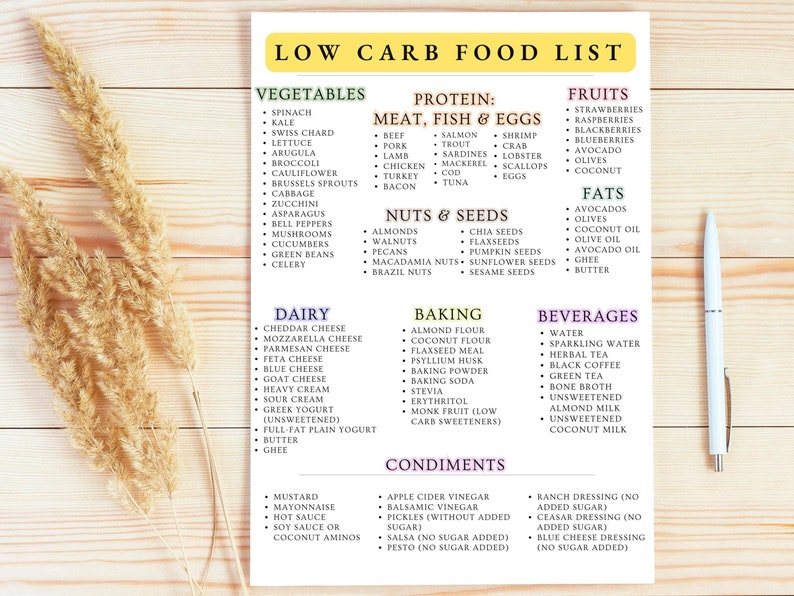 Low Carb Food List PDF Printable Comprehensive Keto Diet Guide for