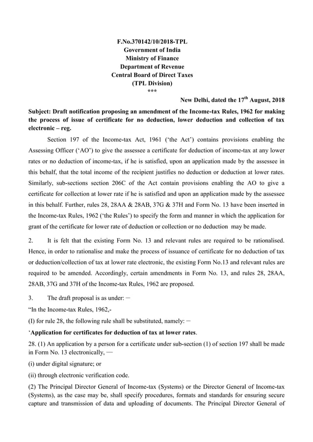 Amendments to rules for online process for lower/nil deduction