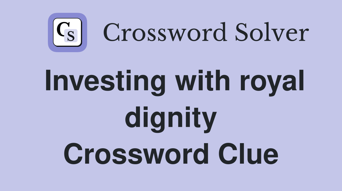Investing with royal dignity Crossword Clue Answers Crossword Solver