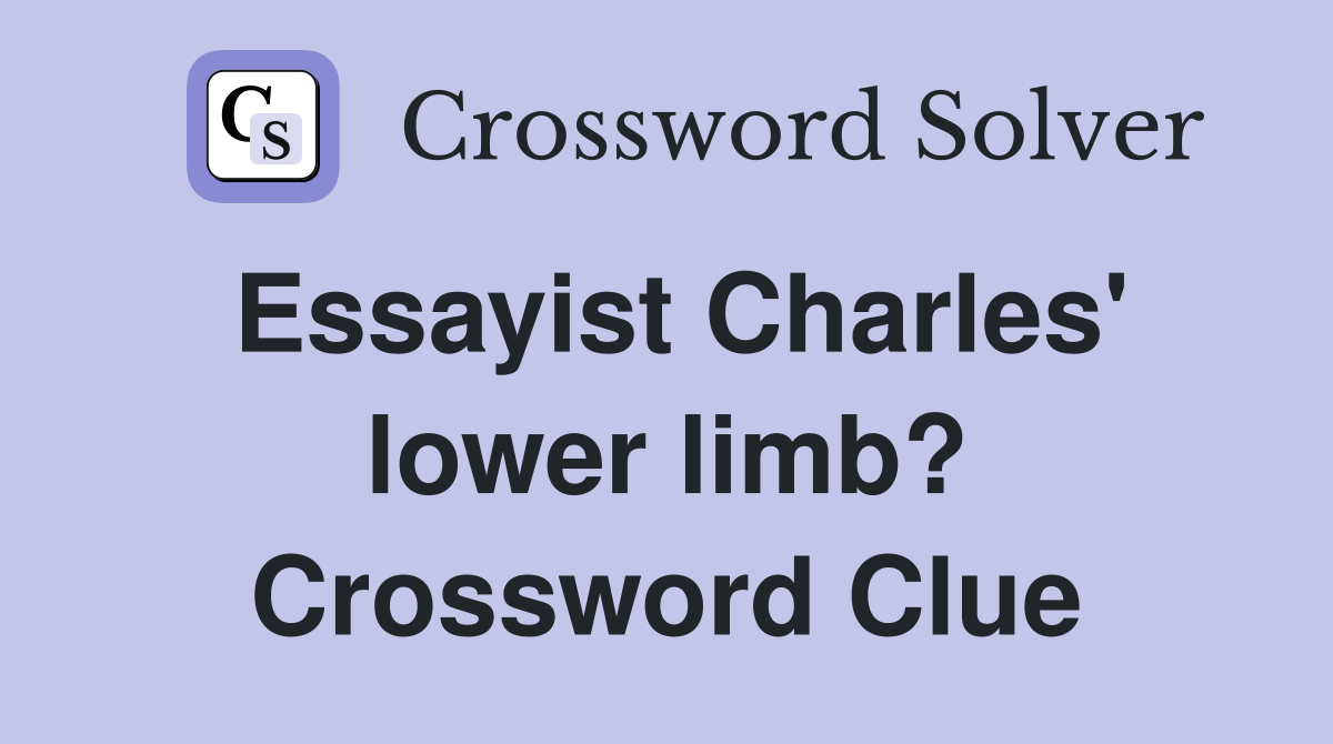 Essayist Charles #39 lower limb? Crossword Clue Answers Crossword Solver