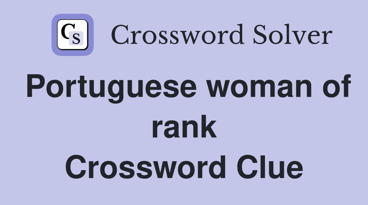 Portuguese woman of rank Crossword Clue Answers Crossword Solver