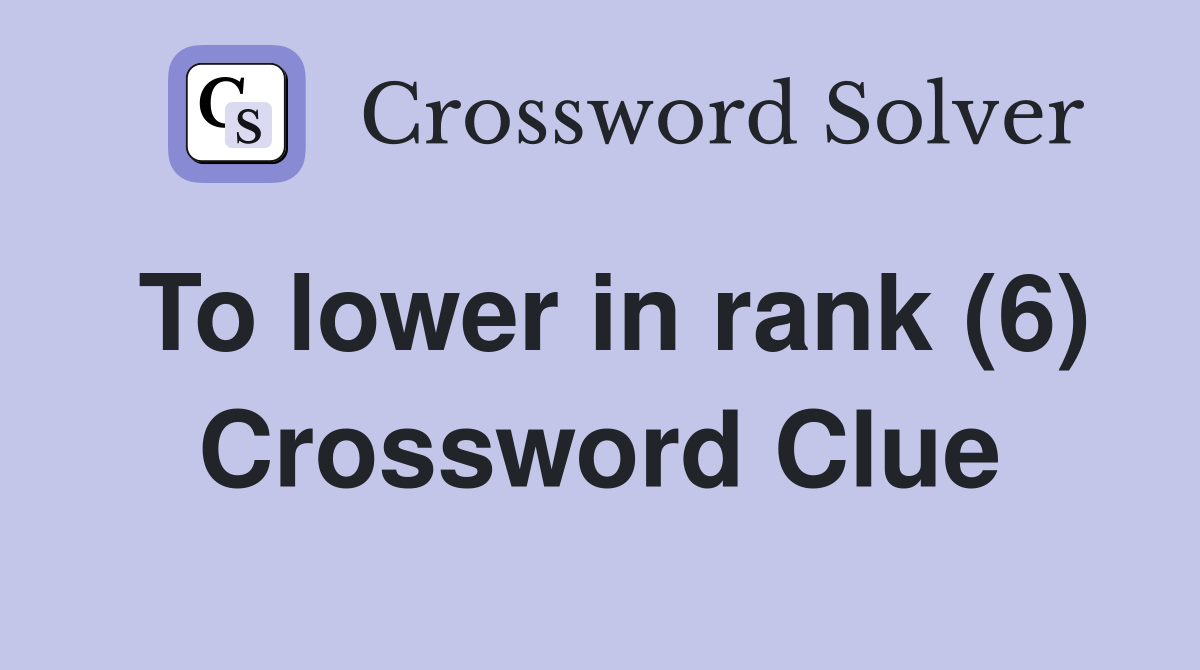 To lower in rank (6) Crossword Clue Answers Crossword Solver