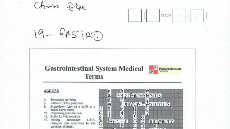 GI Crossword Class Notes for Medical Terminology Studocu