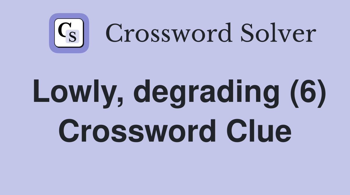 Lowly degrading (6) Crossword Clue Answers Crossword Solver