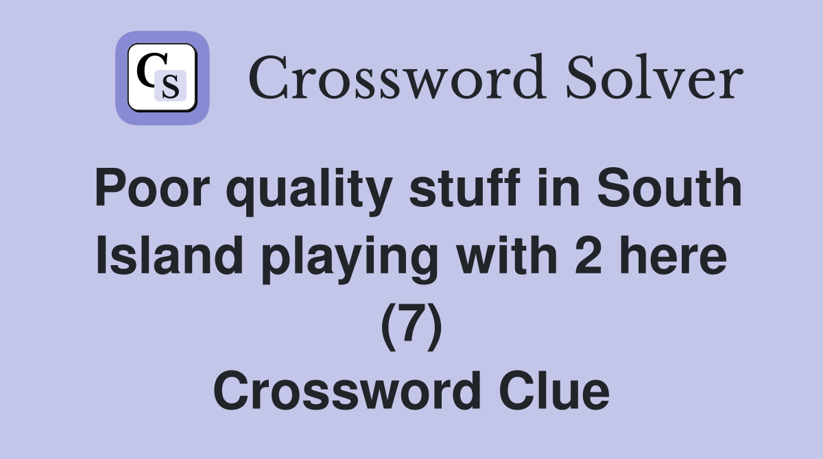 Poor quality stuff in South Island playing with 2 here (7) Crossword