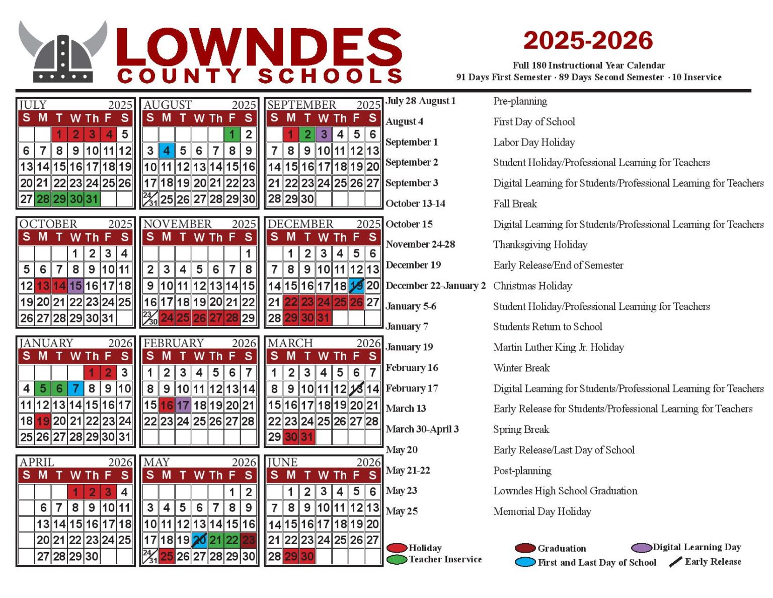 Lowndes County Schools Calendar 2025 2026 Holidays New School Calendar