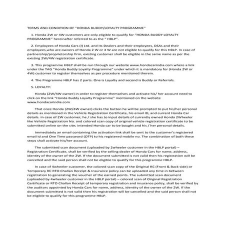 Honda Buddy Loyalty Program Terms and Conditions PDF