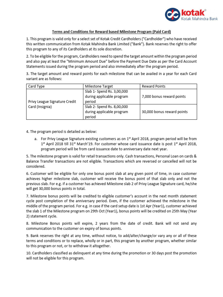 Terms and Conditions For Reward Based Milestone Program PDF Credit