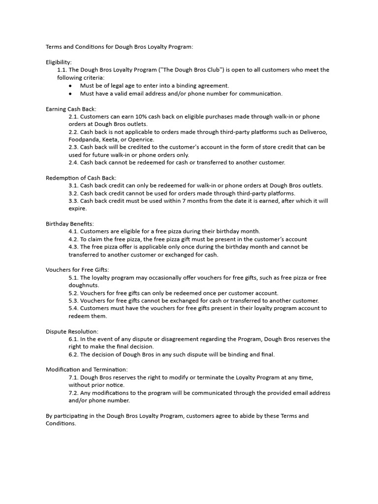 Terms and Conditions For Dough Bros Loyalty Program PDF Loyalty
