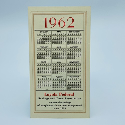 1962 Loyola Savings And Loan Bank Pocket Calendar Map Ad Maryland