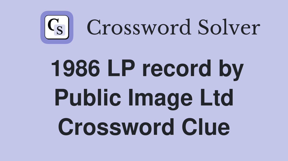 1986 LP record by Public Image Ltd Crossword Clue Answers Crossword