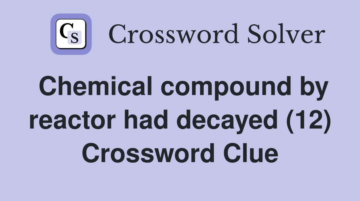 Chemical compound by reactor had decayed (12) Crossword Clue Answers