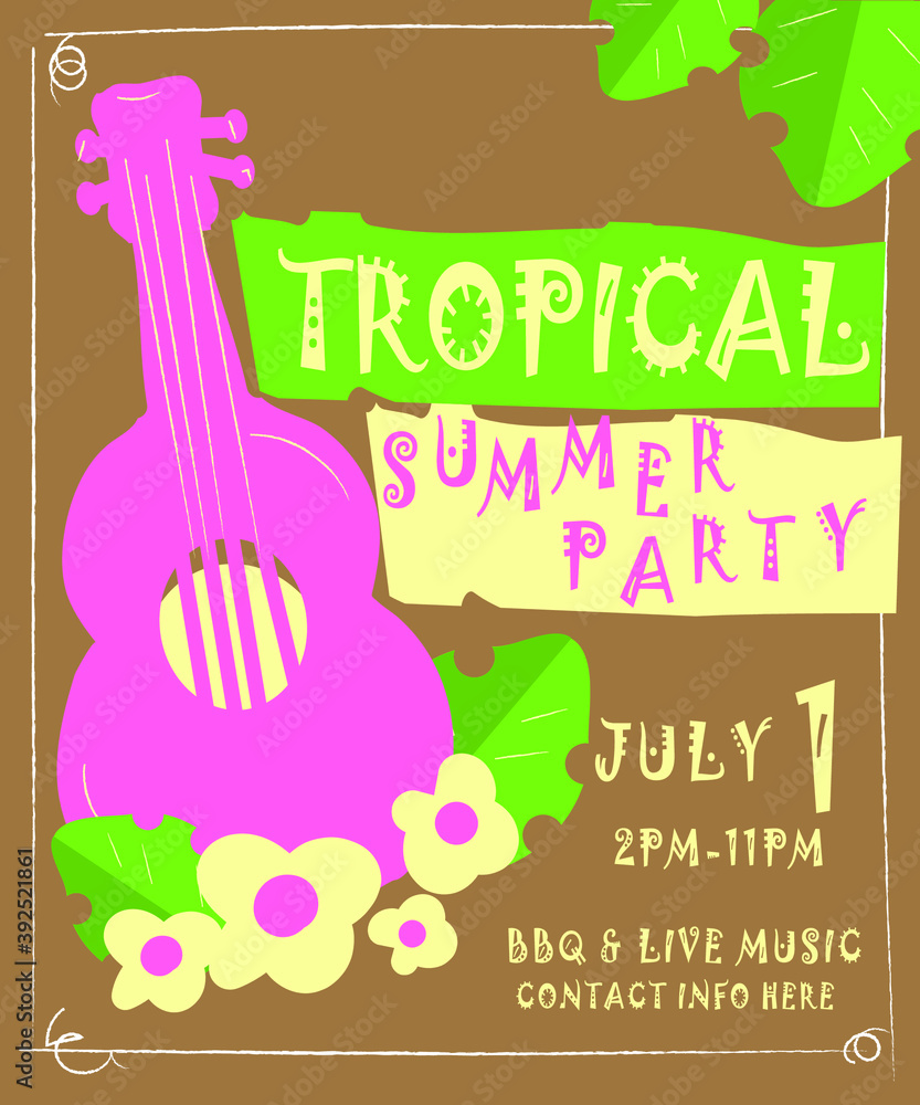 Cute Tropical Luau Party Invitation Design Template Stock Vector