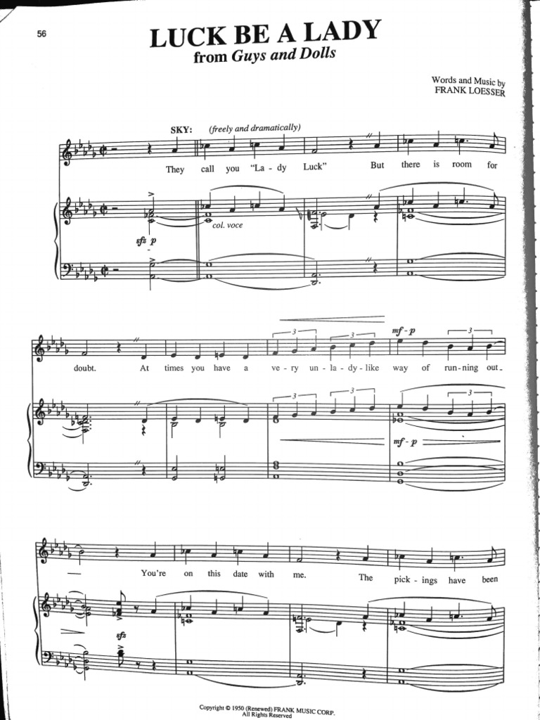 Luck Be A Lady (Piano Vocal Guitar Chords) Print Sheet Music Now