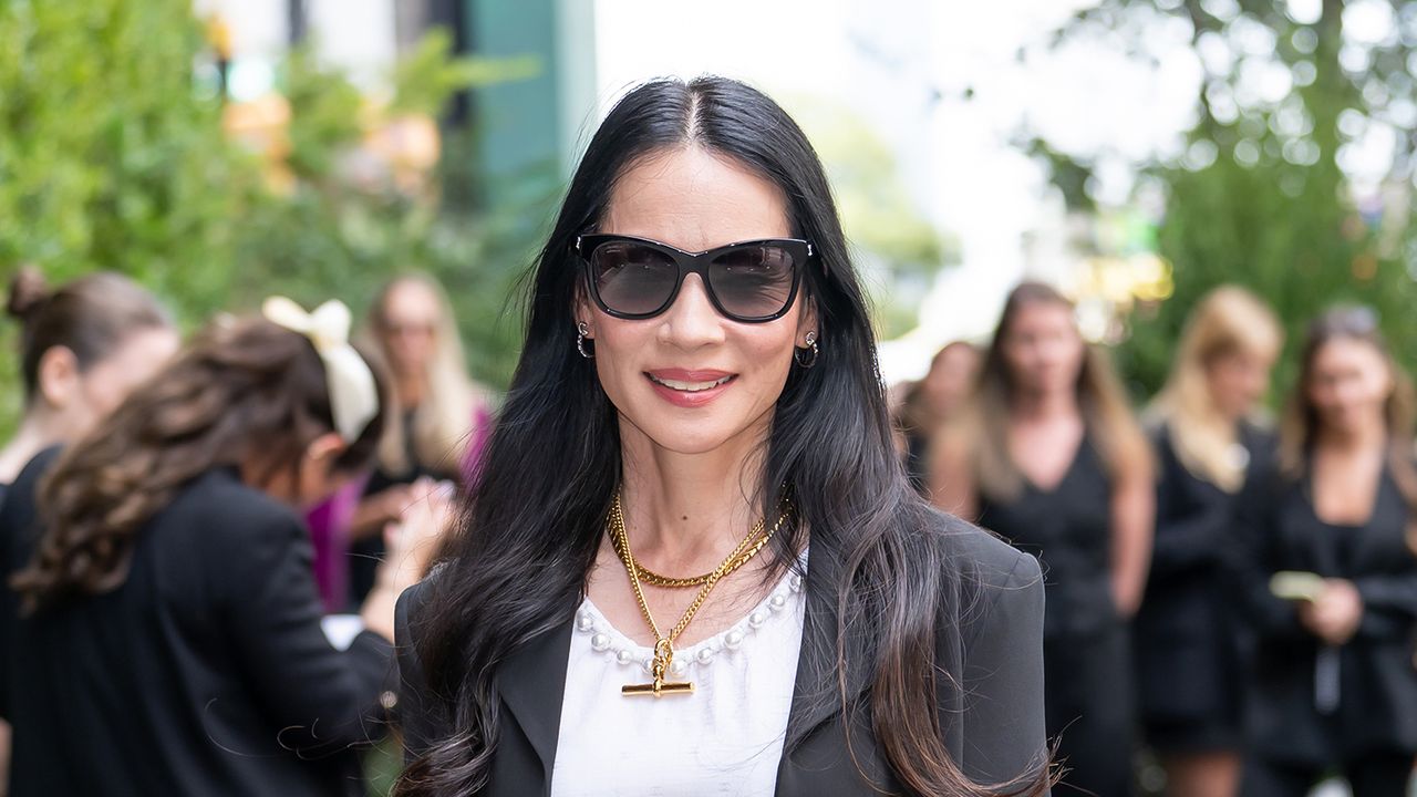 Lucy Liu #39 s wide leg jeans outfit offers a fresh take on this trending