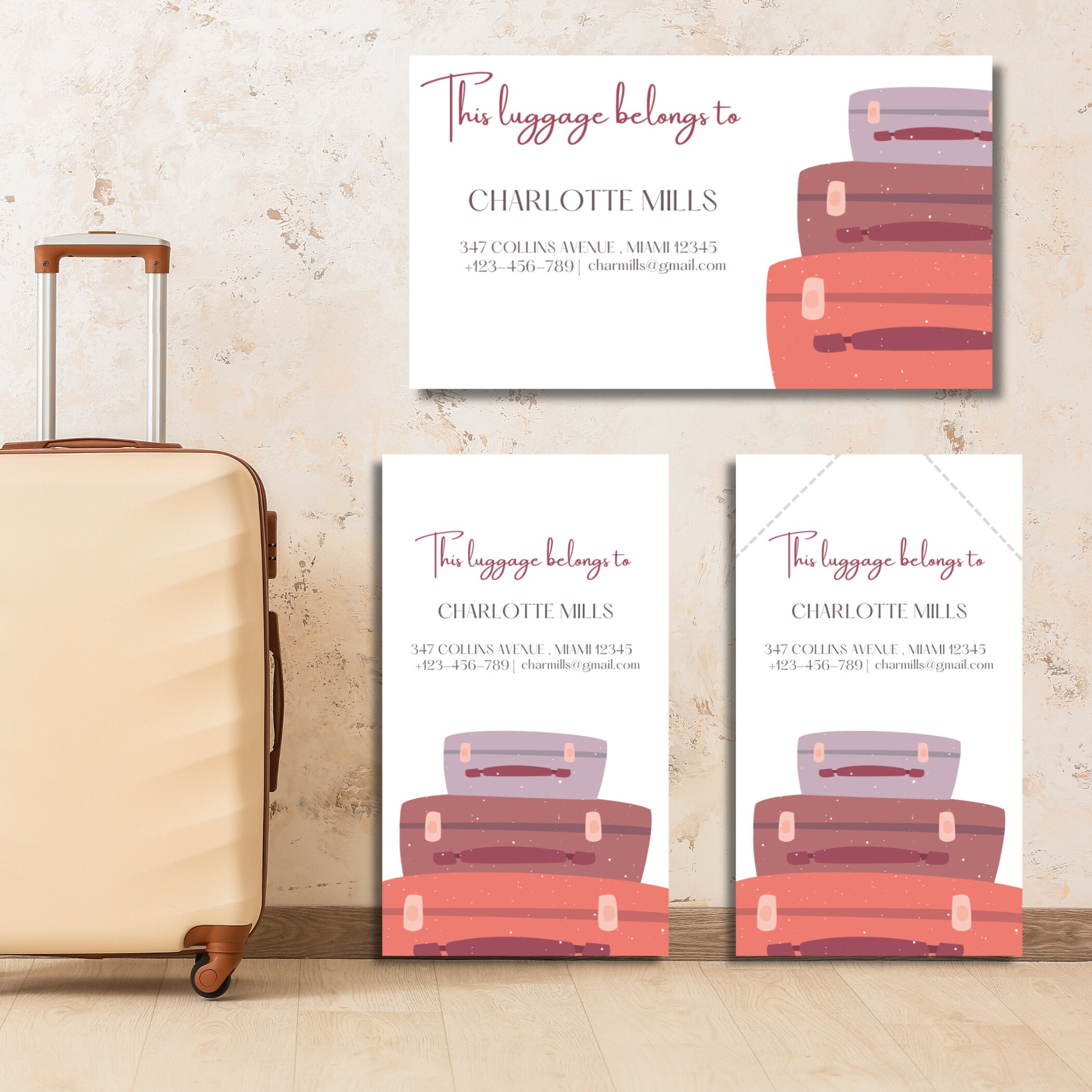 Editable Luggage Tag Template Travel Itinerary Digital Etsy