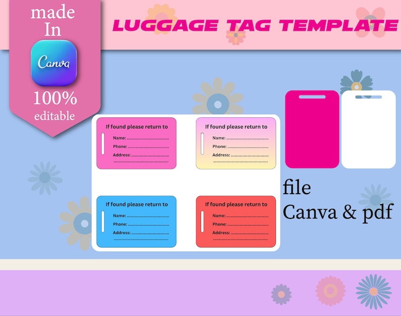 Free printable customizable luggage tag templates Canva