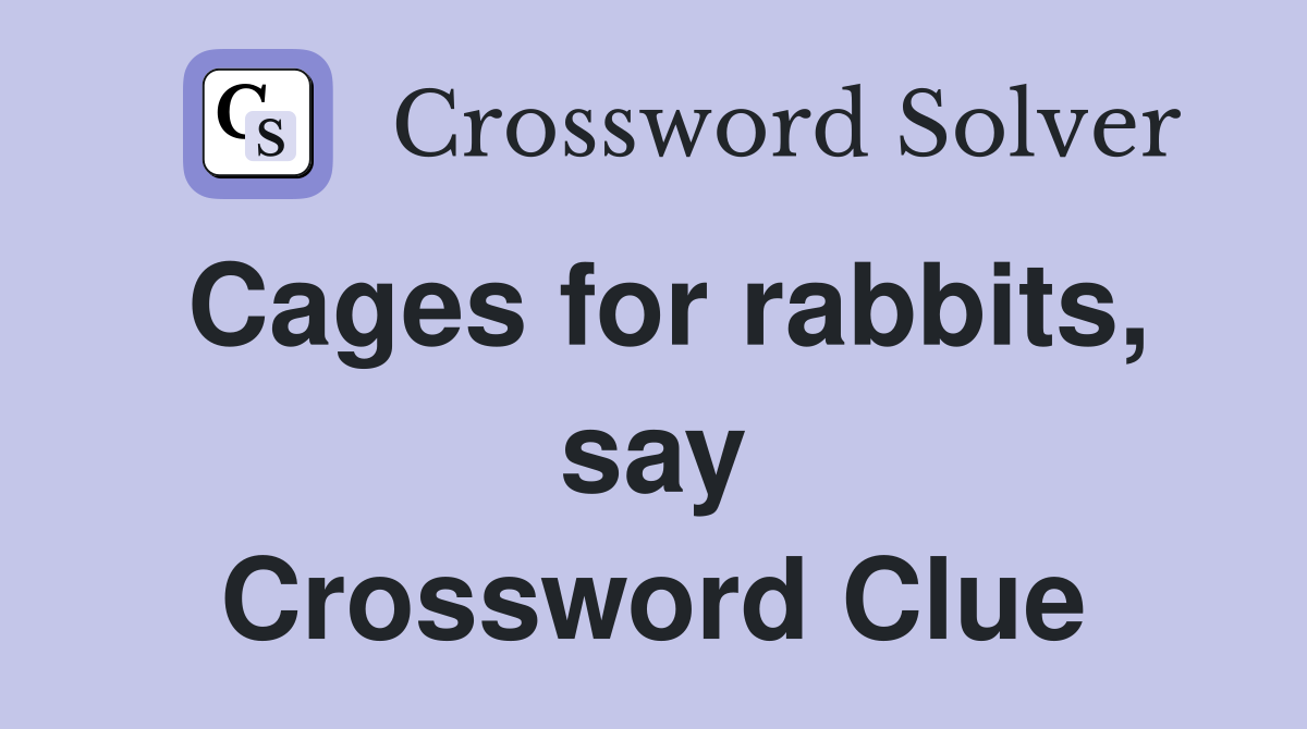 Cages for rabbits say Crossword Clue Answers Crossword Solver