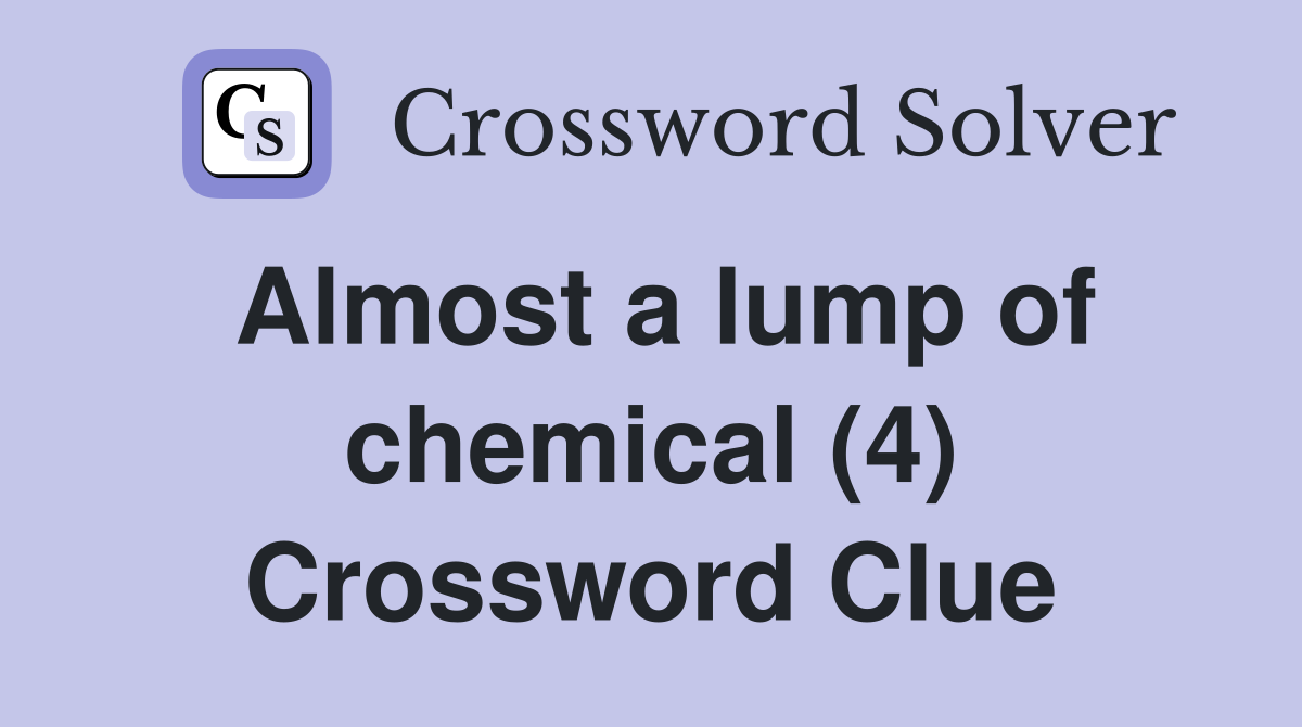 Almost a lump of chemical (4) Crossword Clue Answers Crossword Solver